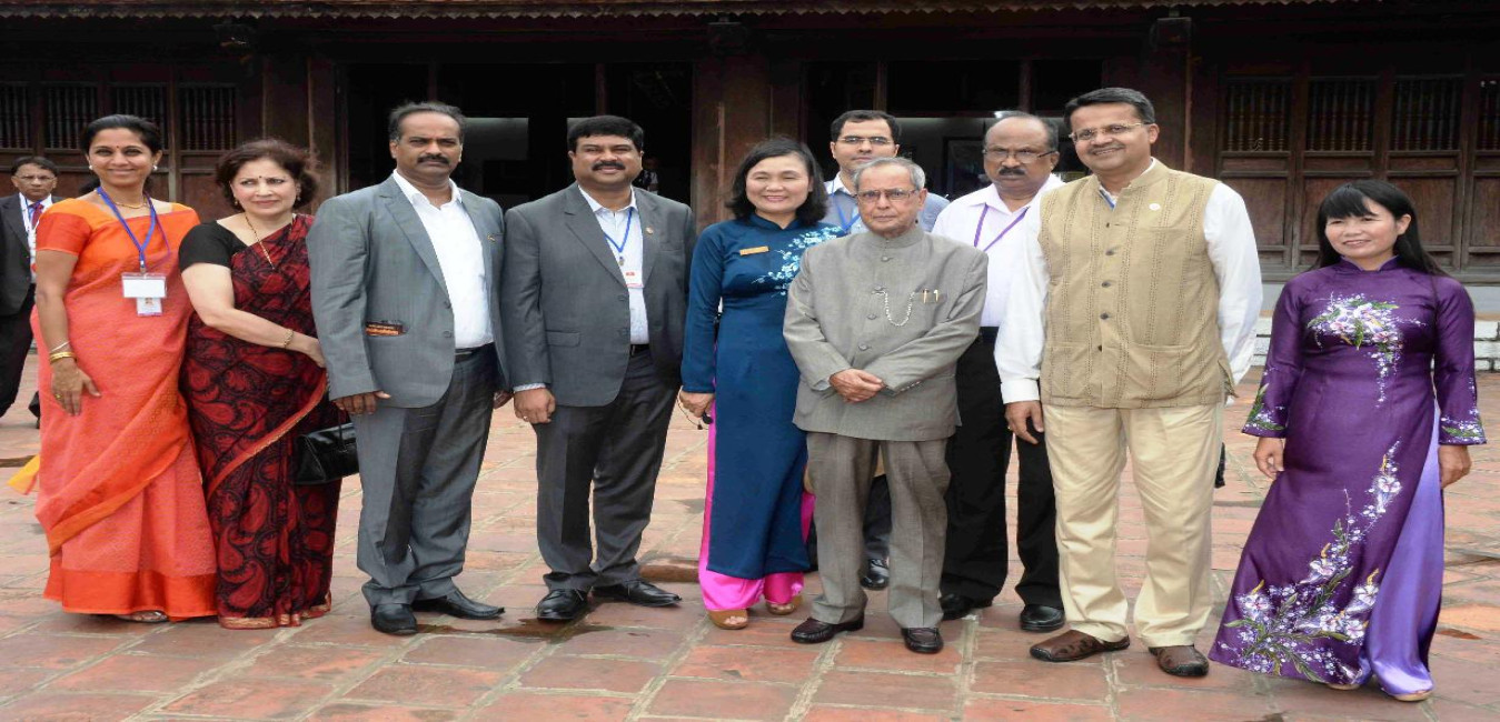 The President of India, Shri Pranab Mukherjee visiting the Temple of Literature in Vietnam on Sep 16, 2014