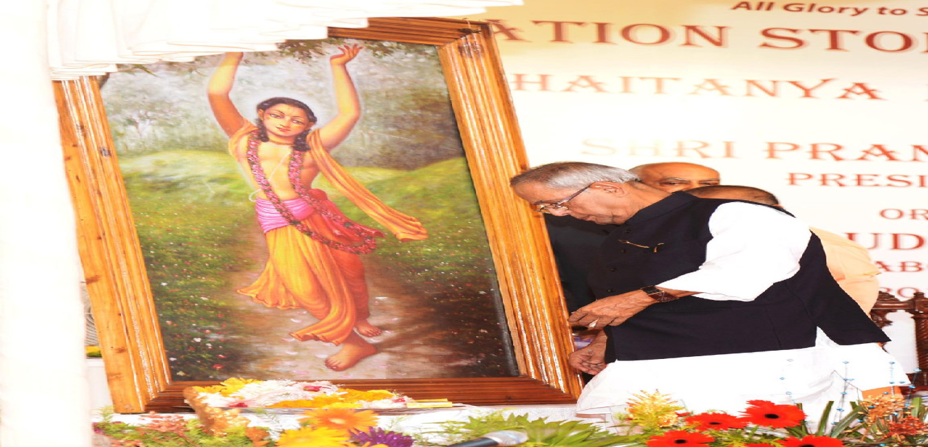 The President of India, Shri Pranab Mukherjee at the function and pressing the button to unveil the Foundation Stone (Plaque) of the Sri Chaitanya Mahaprabhu Museum at Sri Gaudiya Math, Baghbazar at Kolkata in West Bengal on Sep 16, 2013