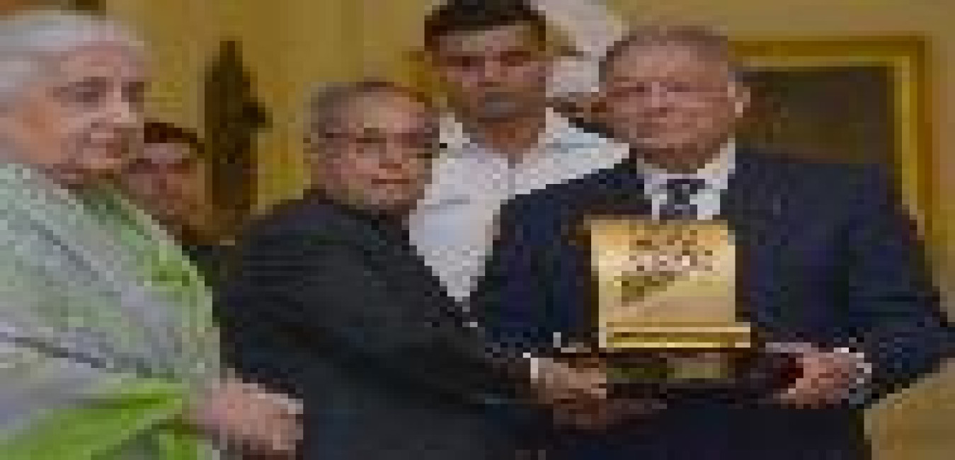 The President of India, Shri Pranab Mukherjee presenting the Annual Tagore Award for Cultural Harmony for the year 2013 to Maestro Zubin Mehta at Rashtrapati Bhavan in New Delhi on Sep 06, 2013