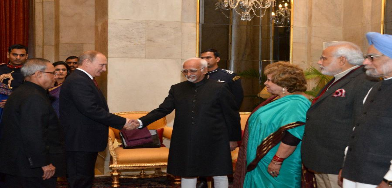 The President of India, Shri Pranab Mukherjee at the Banquet Hosted in Honour of the Distinguished Guests of the President of the Russian Federation, HE Mr Vladimir V Putin at Rashtrapati Bhavan in New Delhi on Dec 11, 2014