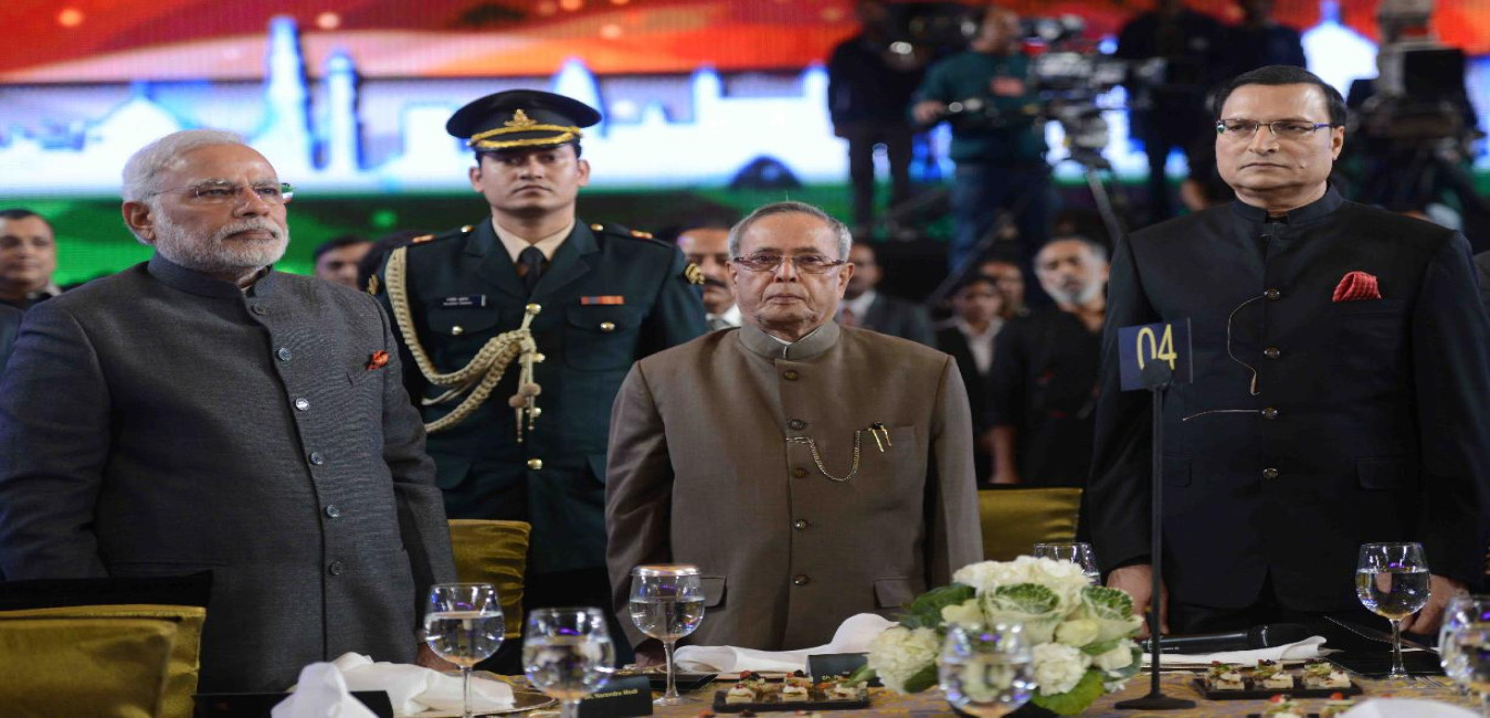 The President of India, Shri Pranab Mukherjee at the Function being organized on the occasion of 21th Years Completion of the Show 'Aap Ki Adalat' in India TV at Pragati Maidan in New Delhi on Dec 02, 2014