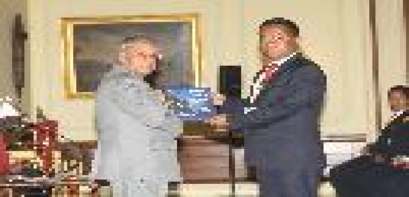 The President of India, Shri Pranab Mukherjee Presenting of Silver Trumpet & Trumpet Banner of President's Bodyguard on March 30, 2013