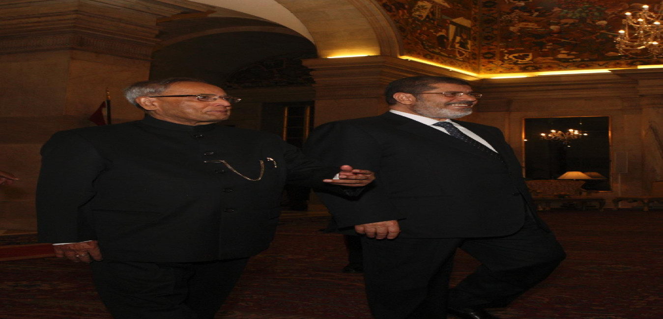 The President of India, Shri Pranab Mukherjee receives HE Dr Mohamed Morsy President of The Arab Republic of Egypt on March 18, 2013