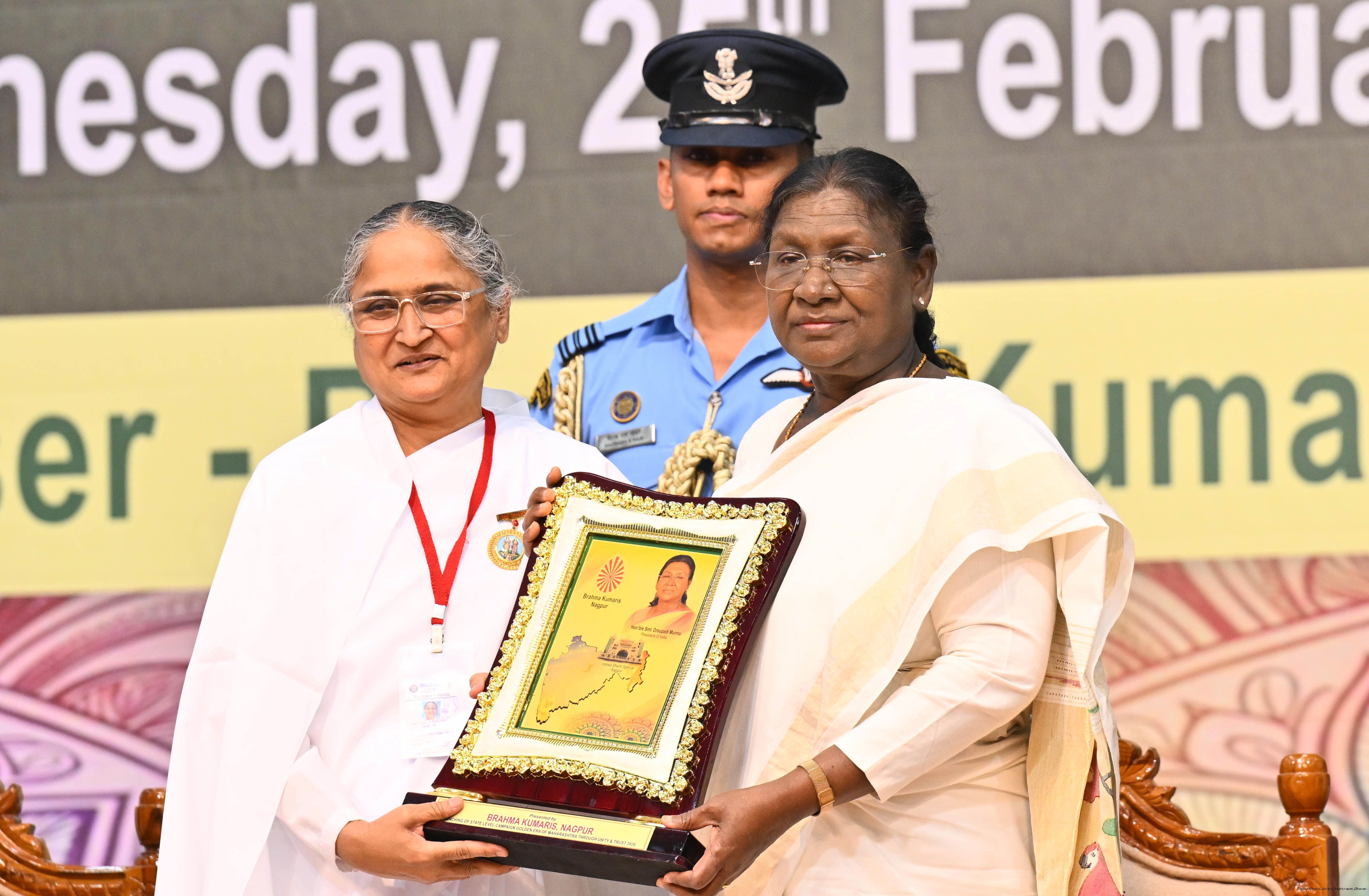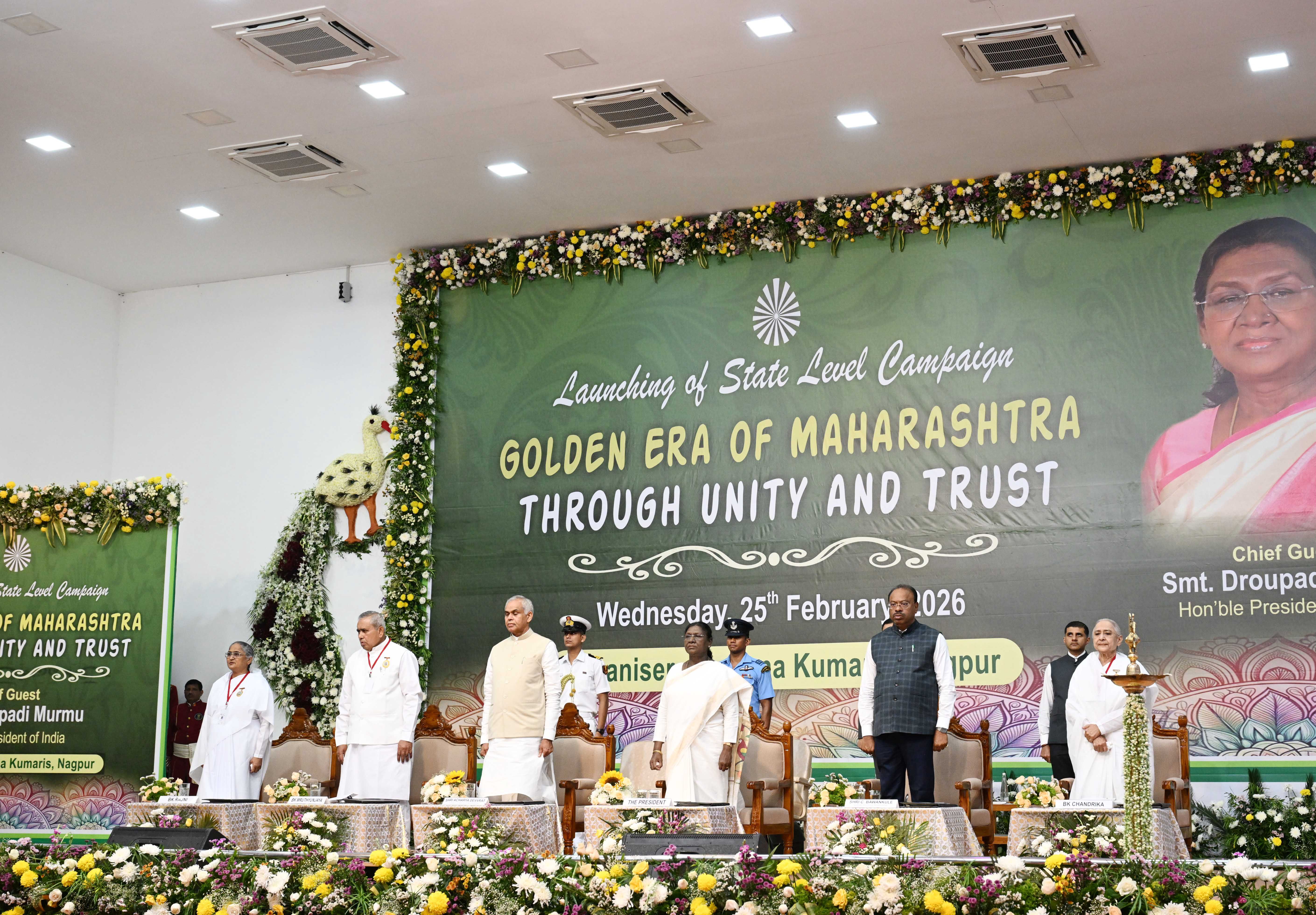 The President of India, Smt Droupadi Murmu graced the state-level launch of ‘Golden Era of Maharashtra through Unity and Trust’, organised by Brahma Kumaris at Vishwa Shanti Sarovar, Nagpur, Maharashtra on February 25, 2026.