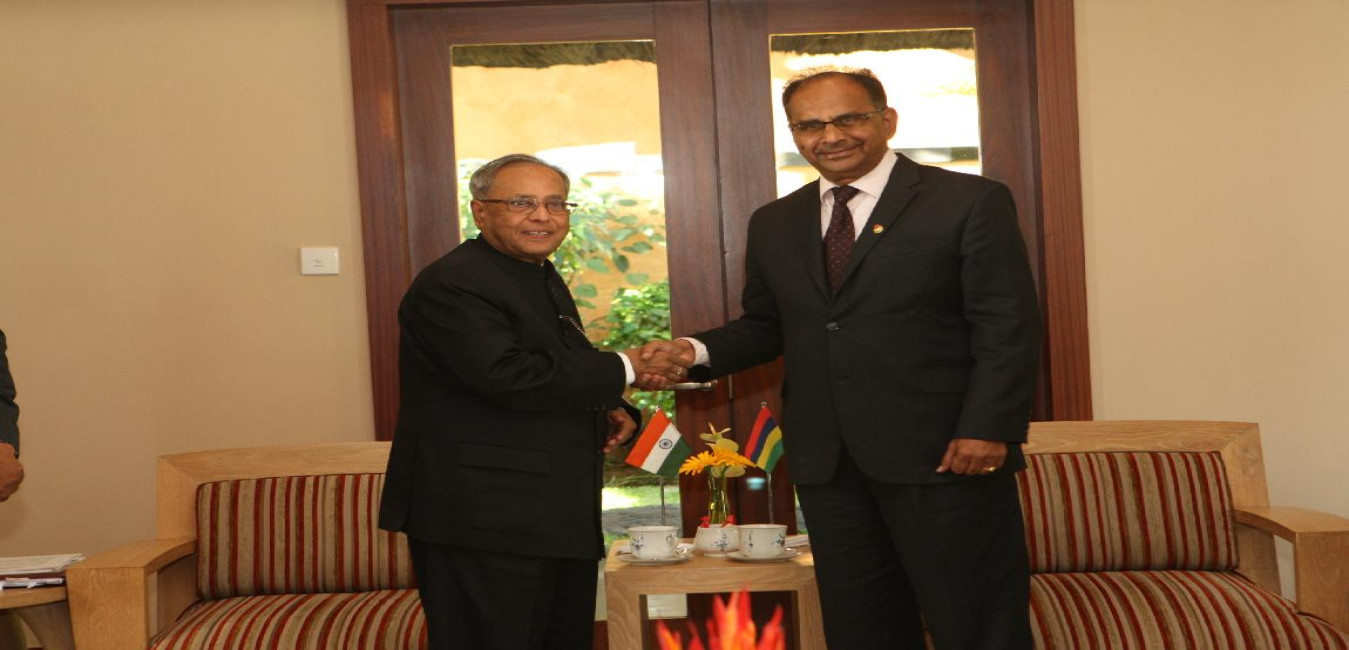 The President of India, Shri Pranab Mukherjee meeting the Prime Minister of Mauritius on 12 March 2013