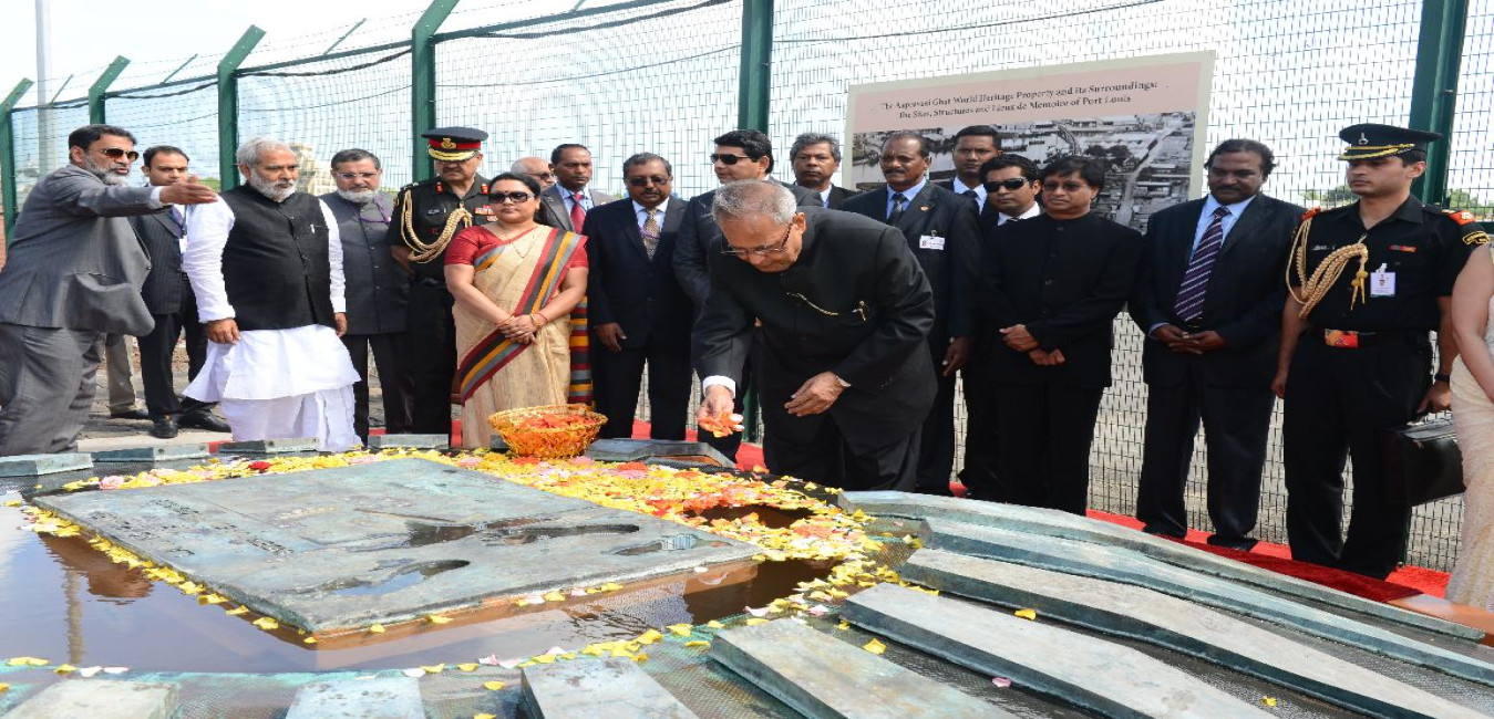 The President of India, Shri Pranab Mukherjee Visiting Aapravasi Ghat on 12 March 2013