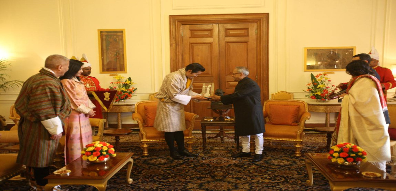 The President of India, Shri Pranab Mukherjee Call by his Majesty Jigme Khesar Namgyel Wangchuck King of Bhutan & her Majesty the Queen Jetsun Pema Wangchuck on 25 Jan 2013