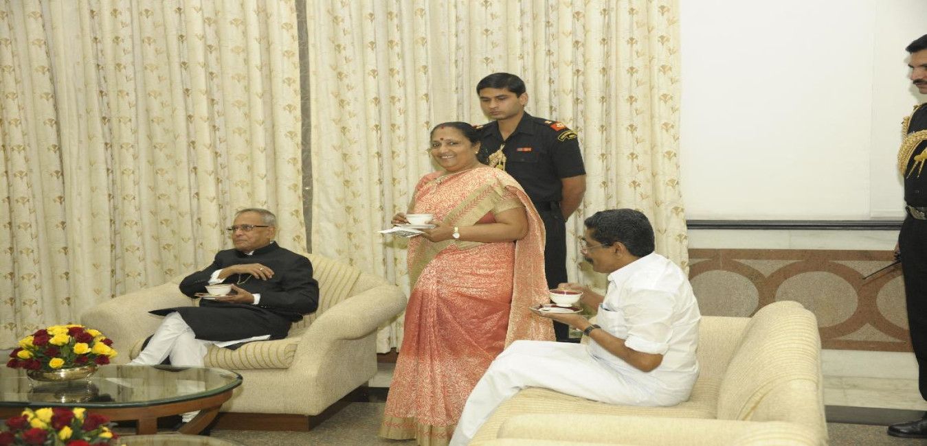 The President of India, Shri Pranab Mukherjee Exchanging Gifts with The Governor of Kerala on October 30, 2012