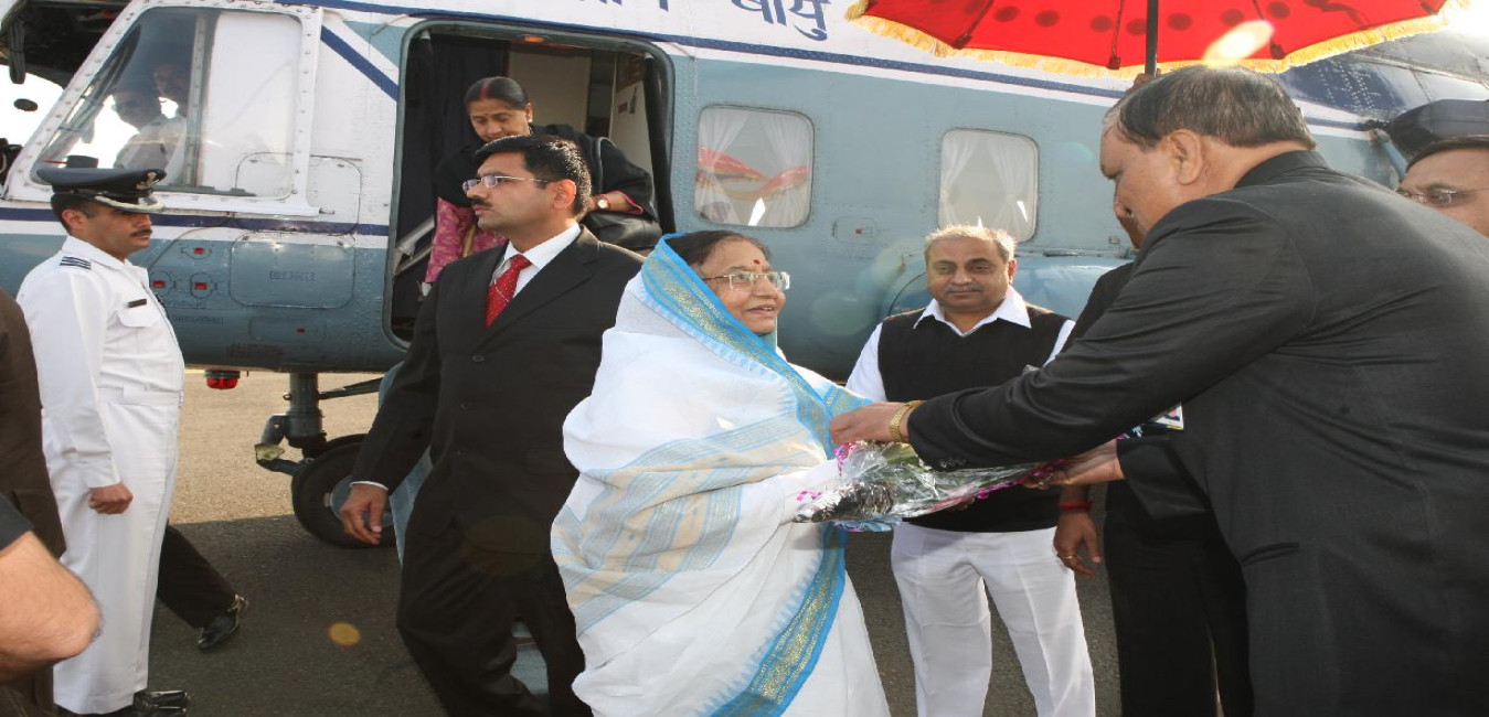 The President of India, Smt Pratibha Devisingh Patil during arrival at Bhavnagar IFA Area in Gujarat on Jan 03, 2011