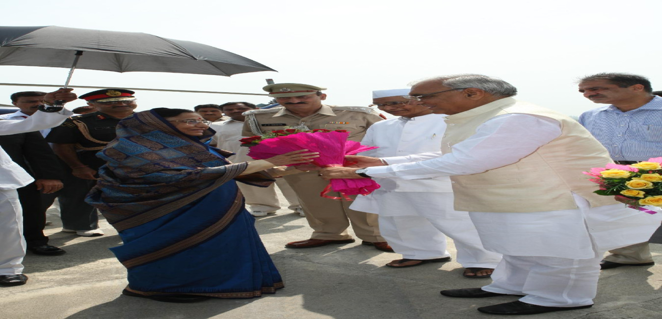 The President of India, Smt Pratibha Devisingh Patil being welcomed by Governor of Haryana, Shri Jagannath Pahadia and Chief Minister, Shri Bhupinder Singh Hooda at Karnal Helipad in Haryana on July 24, 2010
