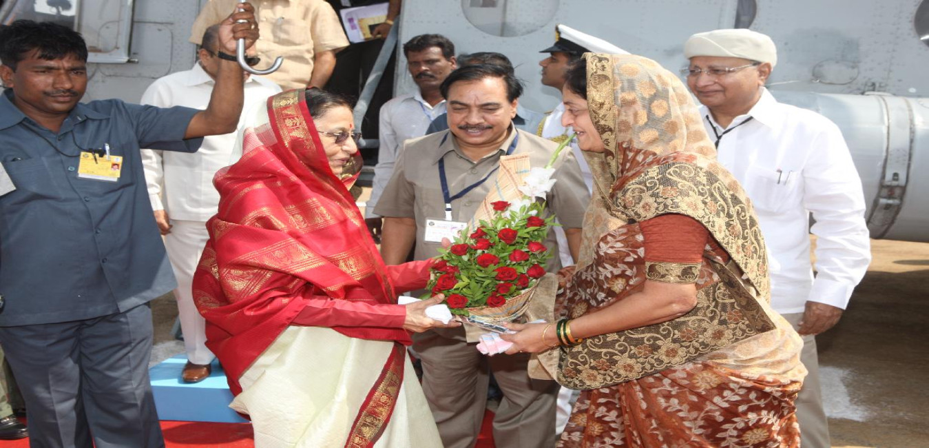 The President of India, Smt Pratibha Devisingh Patil arriving at Bodwad Helipad in Maharashtra on June 11, 2010