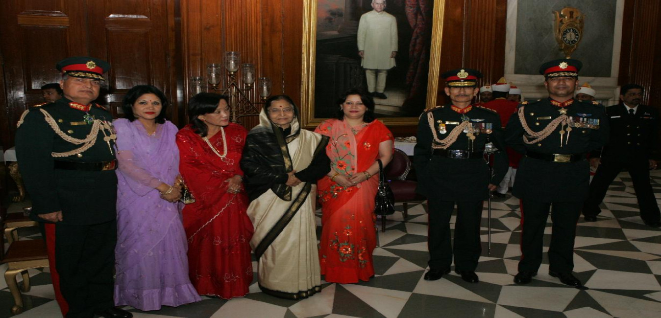 The President of India, Smt Pratibha Devisingh Patil conferring the Honorary Rank of General of the Indian Army the Chief of Staff of the Nepalese Army, General Chhatra Man Singh Gurung at Rashtrapati Bhavan in New Delhi on Dec 14, 2009