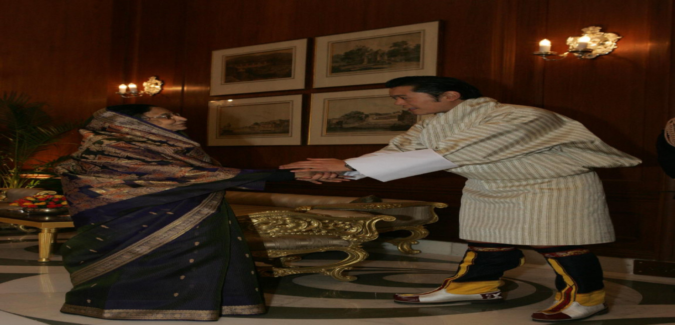 The President of Bhutan, His Majesty Jigme Khesar Namgyel Wangchuck calling on the President of India, Smt Pratibha Devisingh Patil at Rashtrapati Bhavan in New Delhi on Dec 22, 2009