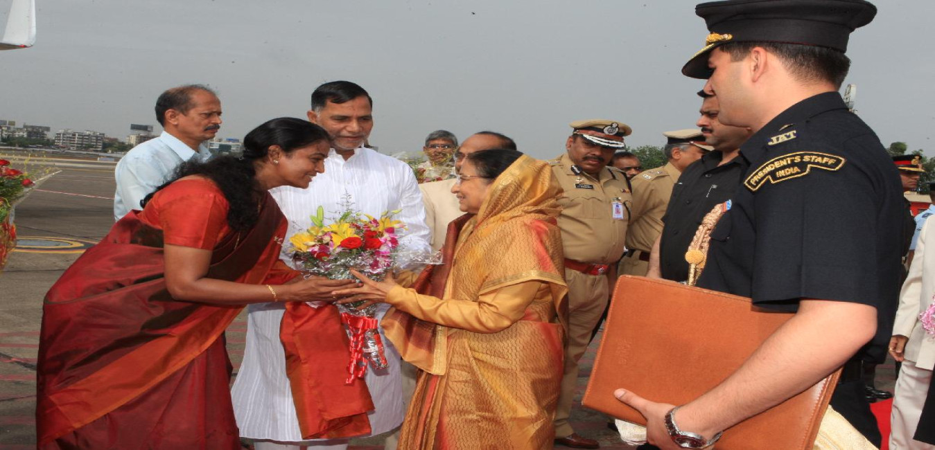 The President of India, Smt Pratibha Devisingh Patil before departure from Mumbai Airport in Maharashtra on June 30, 2009