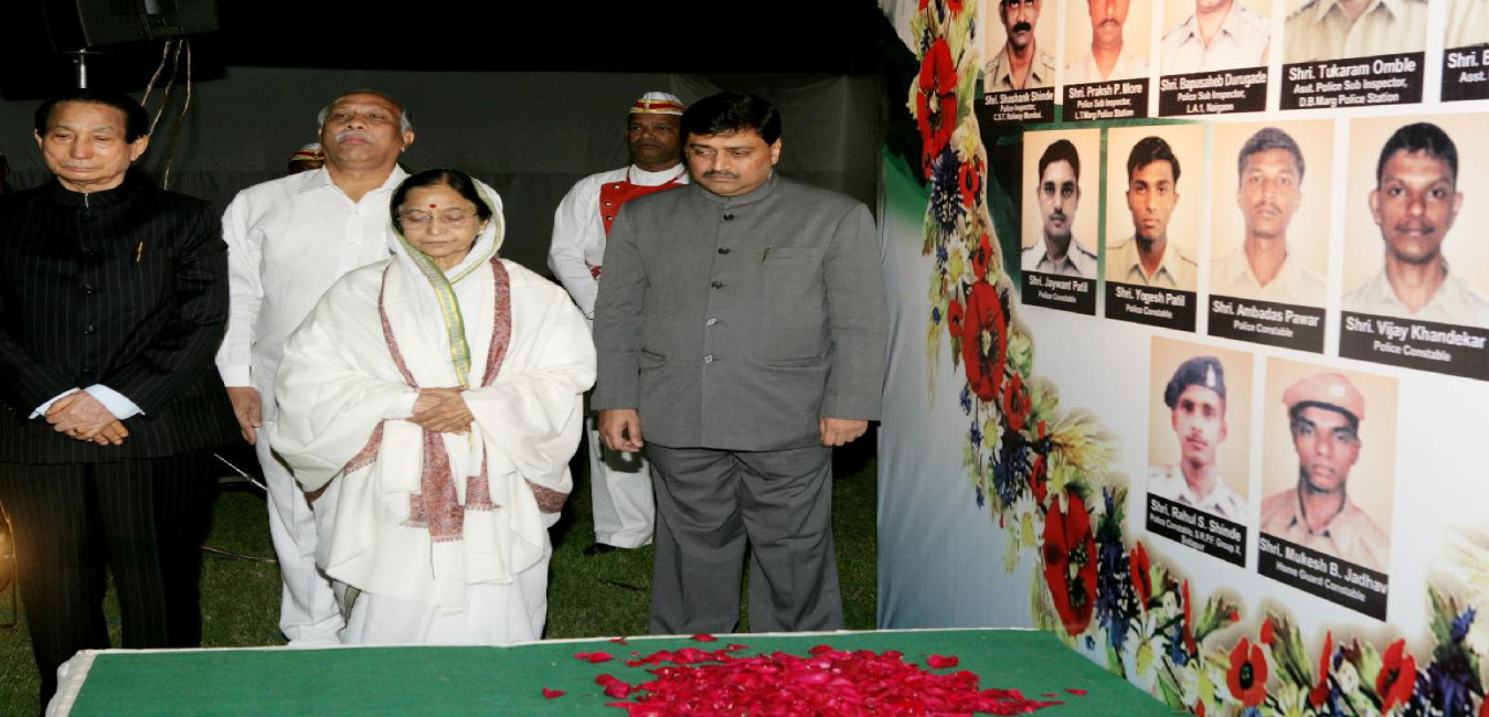 The President of India, Smt Pratibha Devisingh Patil paying homage to the Martyrs of the Mumbai Attack at Nagpur Raj Bhavan in Maharashtra on Dec 26, 2008