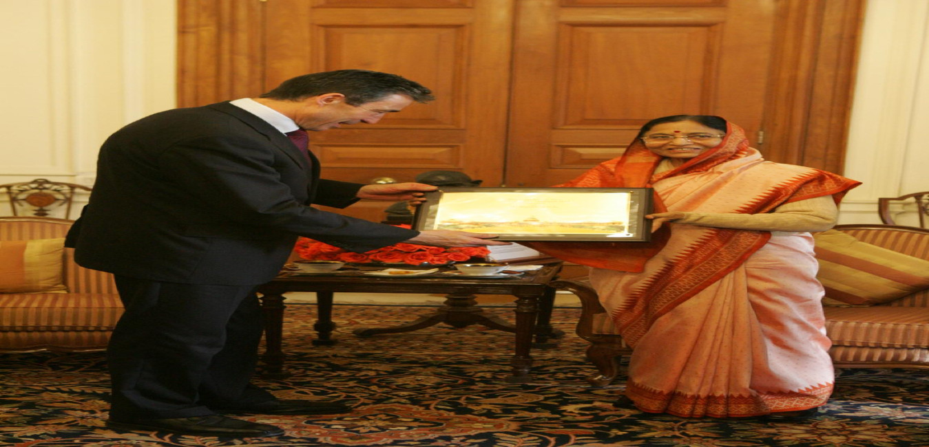 The Prime Minister of Denmark, HE Mr Anders Fogh Rasmussen calling on the President of India, Smt Pratibha Devisingh Patil at Rashtrapati Bhavan in New Delhi on Feb 06, 2008