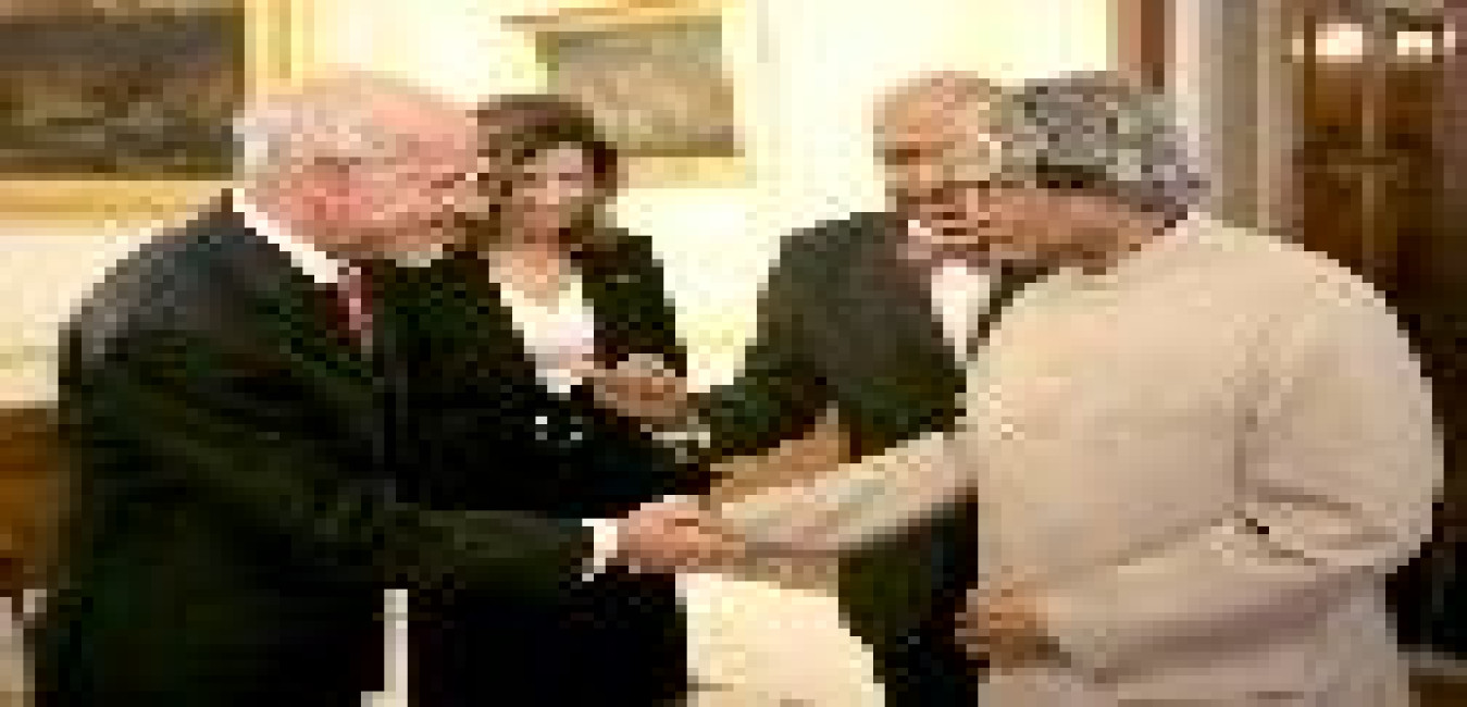 The President of India, Dr A P J Abdul Kalam interacting with Dr Robert S Zeigler, Director General & Dr K Otsuka, Chair Board of Trustees, International Rice Research Institute (IRRI), Manila, Philippines and Shri J K Ladha, IRRI Representative in India at Rashtrapati Bhavan in New Delhi on Oct 10, 2006