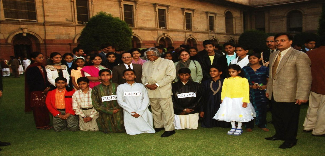 The President of India, Dr A P J Abdul Kalam meeting with the Students from the Federation for the Welfare of the Mentally Retarded Comprising of Students from Sahan Institute, New Delhi Tamanna, New Delhi, Model School, New Delhi, Navijyoti, New Delhi, Balwanth Rai Mehta's Bharatiya Vidya Bhavan, New Delhi and Muskan, New Delhi at the Yellow Drawing Room of Rashtrapati Bhavan in New Delhi on Dec 07, 2002