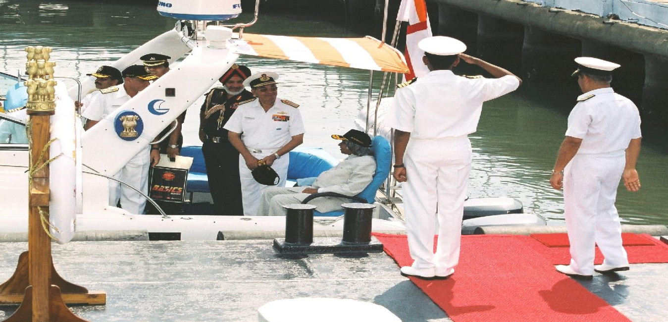 The President of India, Dr A P J Abdul Kalam embarking to INS Tarangini at Kochi in Kerala on April 25, 2004