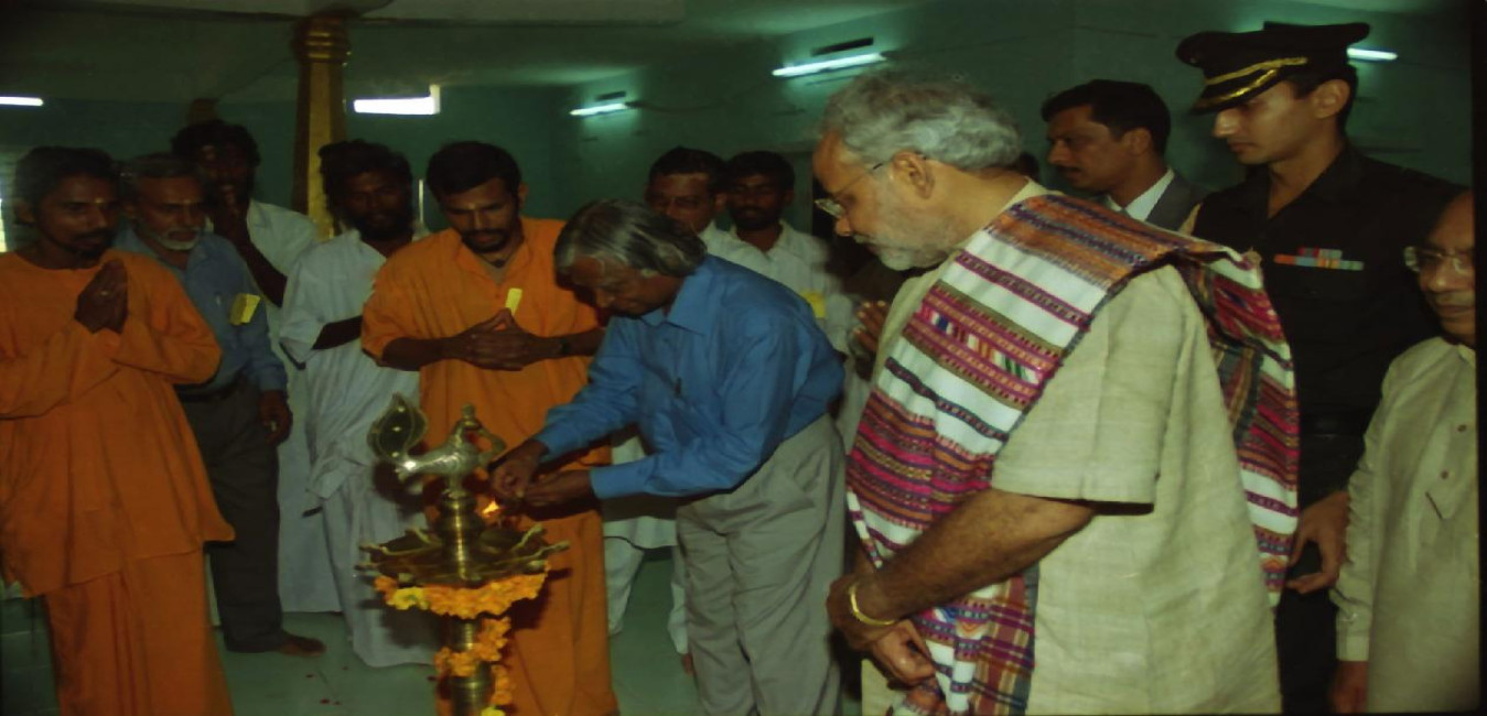 The President of India, Dr A P J Abdul Kalam visiting the Swaminarayan Mandir at Ahmedabad in Gujarat on Aug 13, 2002