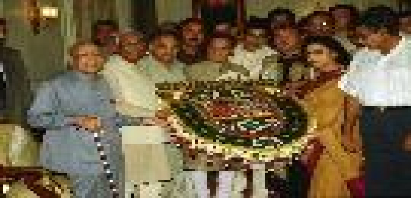 The President of India, Shri K R Narayanan presenting the Pankha of Phool Walon-ki-Sair of Anjuman Saire e Gul Faroshan at the Yellow Drawing Room of Rashtrapati Bhavan in New Delhi on Oct 05, 2001