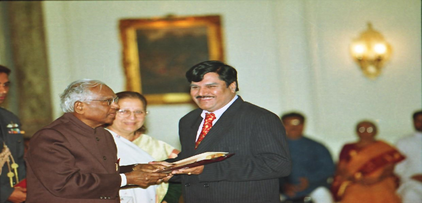 The President of India, Shri K R Narayanan presenting the National Awards for Child Welfare at the Yellow Drawing Room of Rashtrapati Bhavan in New Delhi on Feb 14, 2002