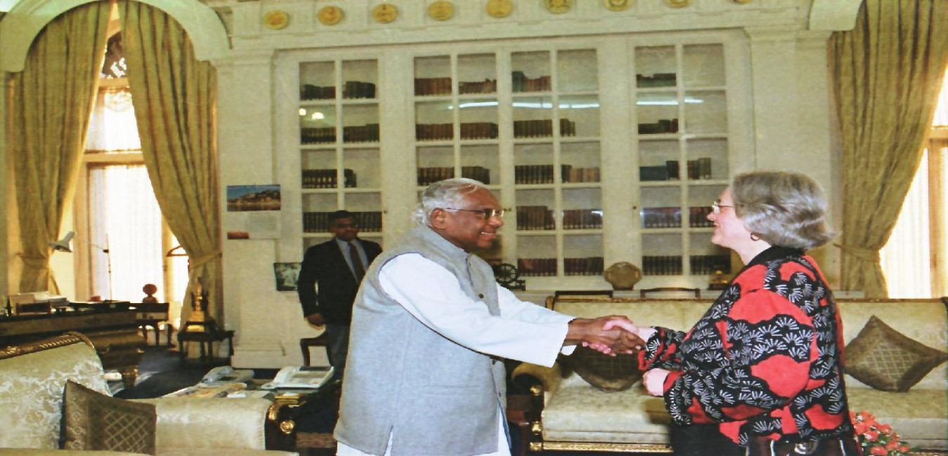 The President of India, Shri K R Narayanan interacting with the President of the National Foundation for India, Ms Susan Beresford with others at Rashtrapati Bhavan in New Delhi on March 05, 2002