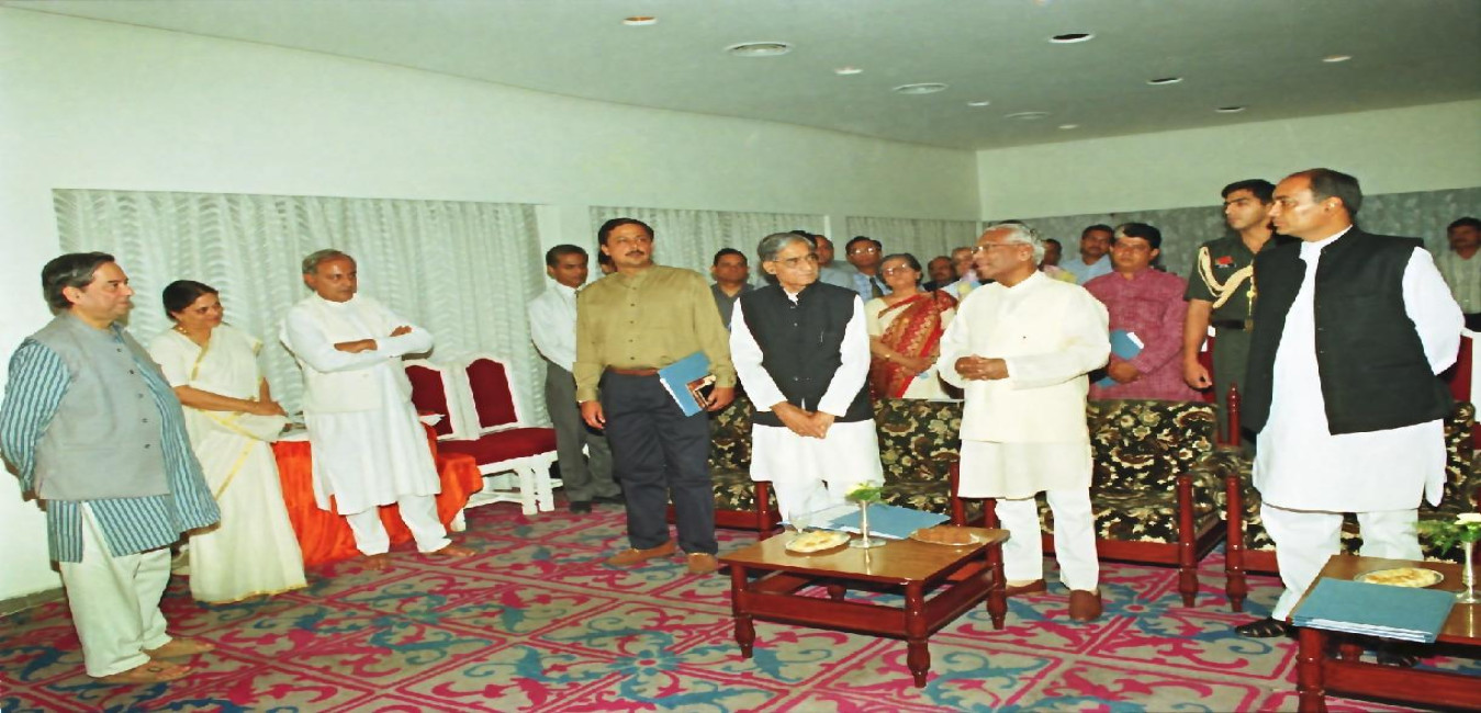 The President of India, Shri K R Narayanan during the Presentation by Shri Martand Singh, Vice Chairman, INTACH on Development Plans for Khajuraho at Khajuraho in Madhya Pradesh on March 07, 1999