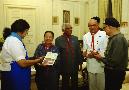 The President of India, Shri K R Narayanan with the Members of Shri Dharmic Leela Committee Parade Ground at the Committee Room of Rashtrapati Bhavan in New Delhi on Oct 16, 2001