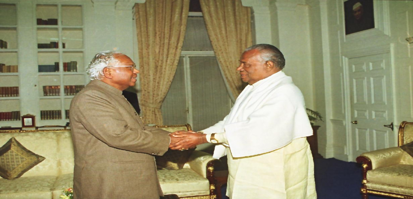 The President of India, Shri K R Narayanan meeting with Mr S Thondaman Minister of Livestock Development and State Infrastructure of Sri Lanka at Rashtrapati Bhavan in New Delhi on Feb 04, 1999