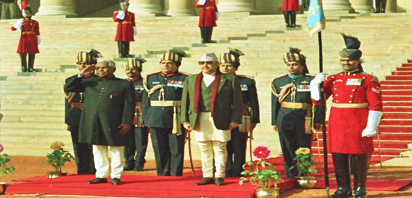 The President of India, Shri K R Narayanan at the Ceremonial Reception of Their Majesties King of Nepal, His Majesty Birendra Bir Bikram Shah Dev and Queen Aishwarya Rajya Laxmi Devi Shah at the Forecourt of Rashtrapati Bhavan in New Delhi on Jan 25, 1999