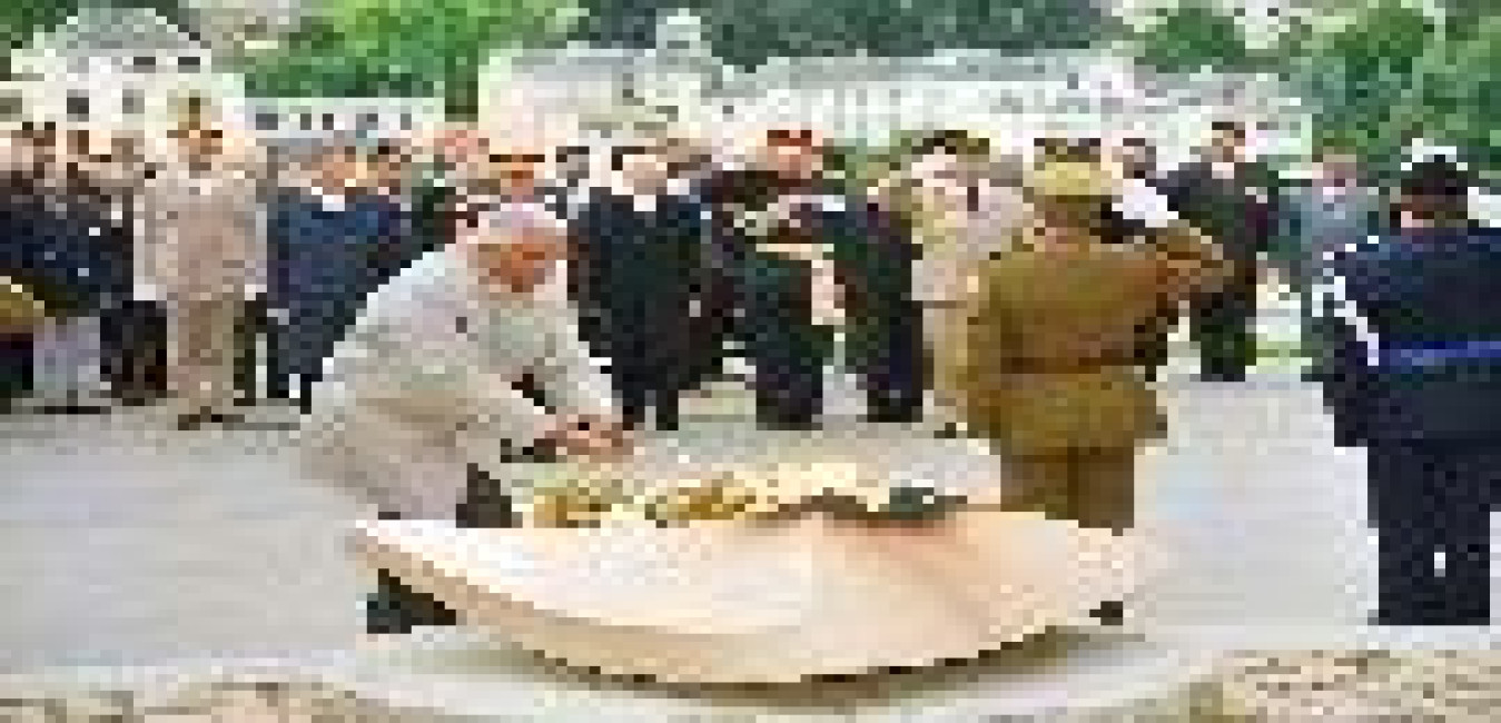 The President of India, Shri K R Narayanan laying of wreath in Luxembourg on Sep 15, 1998