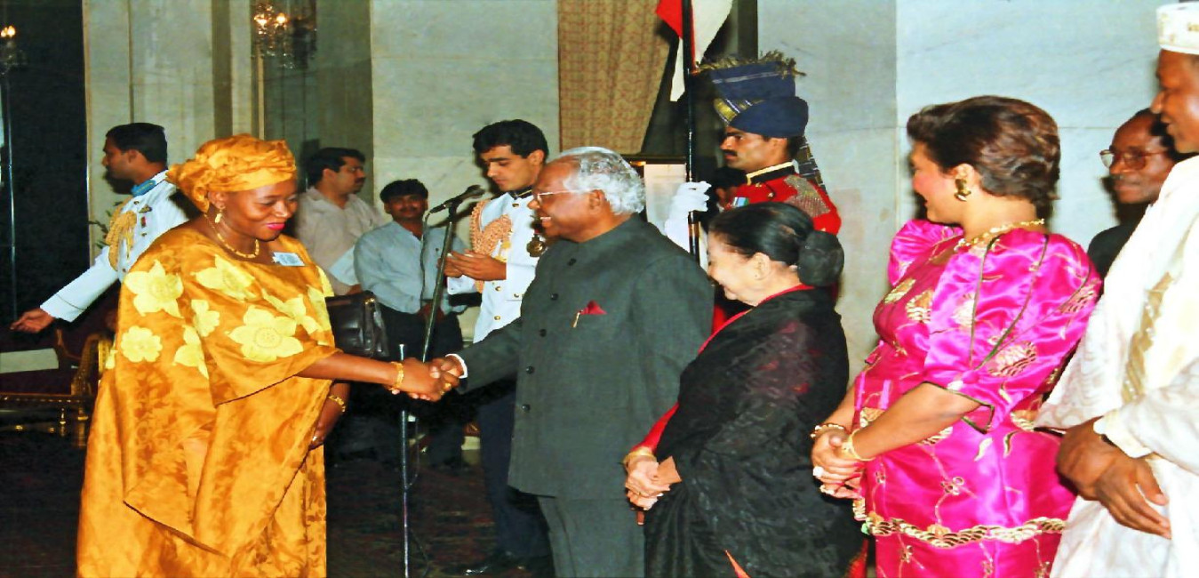 The President of India, Shri K R Narayanan at the Banquet Hosted in Honour of the Distinguished Guests President of the Burkina Faso, HE Mr Blaise Compaore and his Madame Chantal Compaore at the Banquet Hall of Rashtrapati Bhavan in New Delhi on Nov 11, 1997