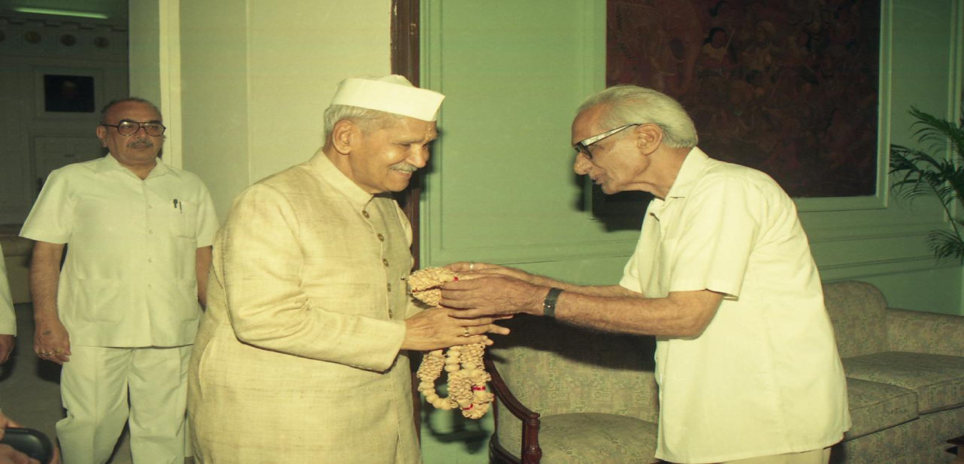 The President of India, Dr. Shankar Dayal Sharma presenting the second Dr. Ambedkar National Award for the year 1994 at Rashtrapati Bhavan in New Delhi on April 14, 1996.