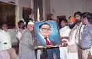 The President of India, Dr. Shankar Dayal Sharma being presented a portrait of Dr. B.R. Ambedkar by All India Safai Mazdoor Sangh on the occasion of Dr. Ambedkar's Birthday, at Rashtrapati Bhavan in New Delhi on April 14, 1996.