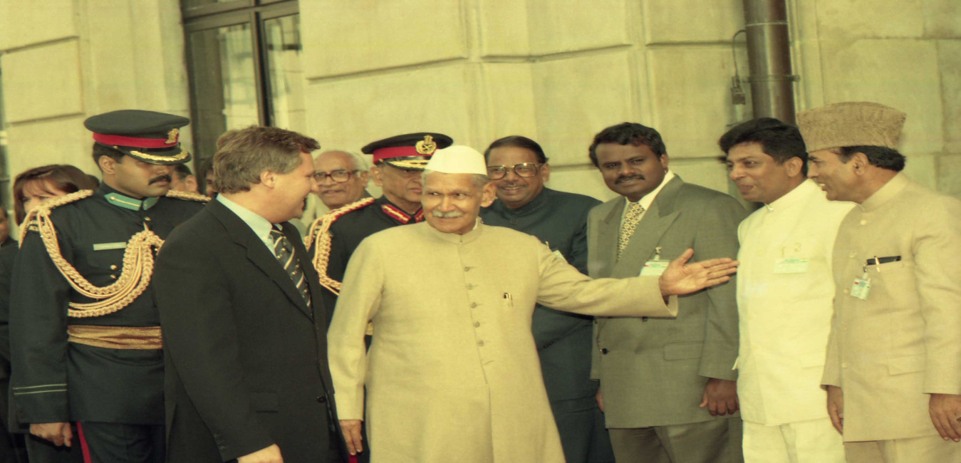 The President of India, Dr. Shankar Dayal Sharma meeting with HH Fahd Bin Mahmoud Al Said, at Bustan Palace Hotel, in Muscat on October 03, 1996.