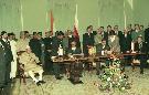 The President of India, Dr. Shankar Dayal Sharma and the Polish President, Mr. Aleksander Kwa?niewski witnessing the signing of Agreements and delivering Joint Statement to Press, at Presidential Palace, Warsaw, in Poland on October 07, 1996.