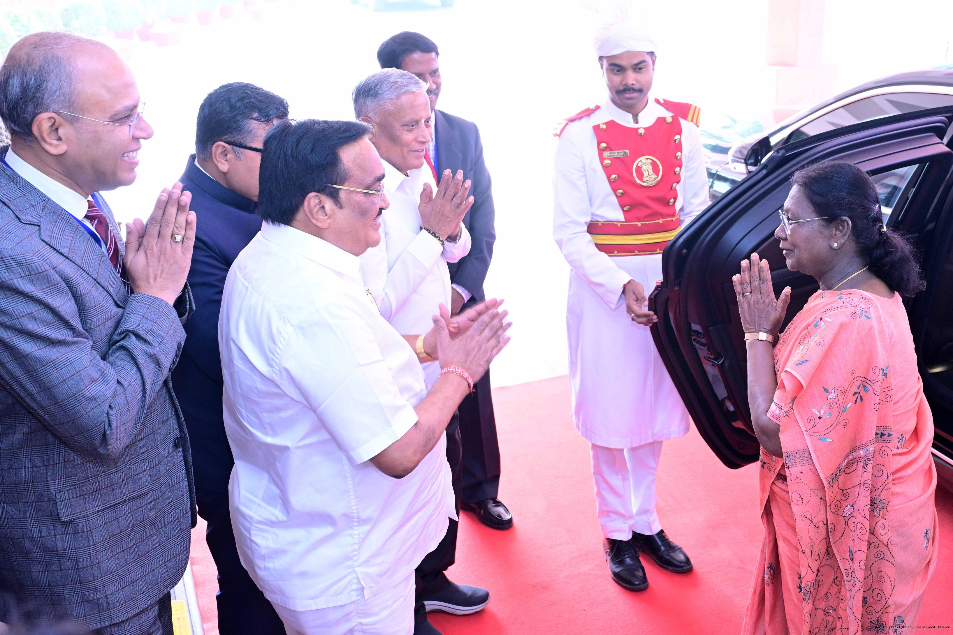 Shri Biswanath Rana, a stone sculptor from Balasore, Odisha along with Father Shri Ganesh Ch Rana and others meeting with the President of India, Smt. Droupadi Murmu at Rashtrapati Bhavan on November 17, 2025.