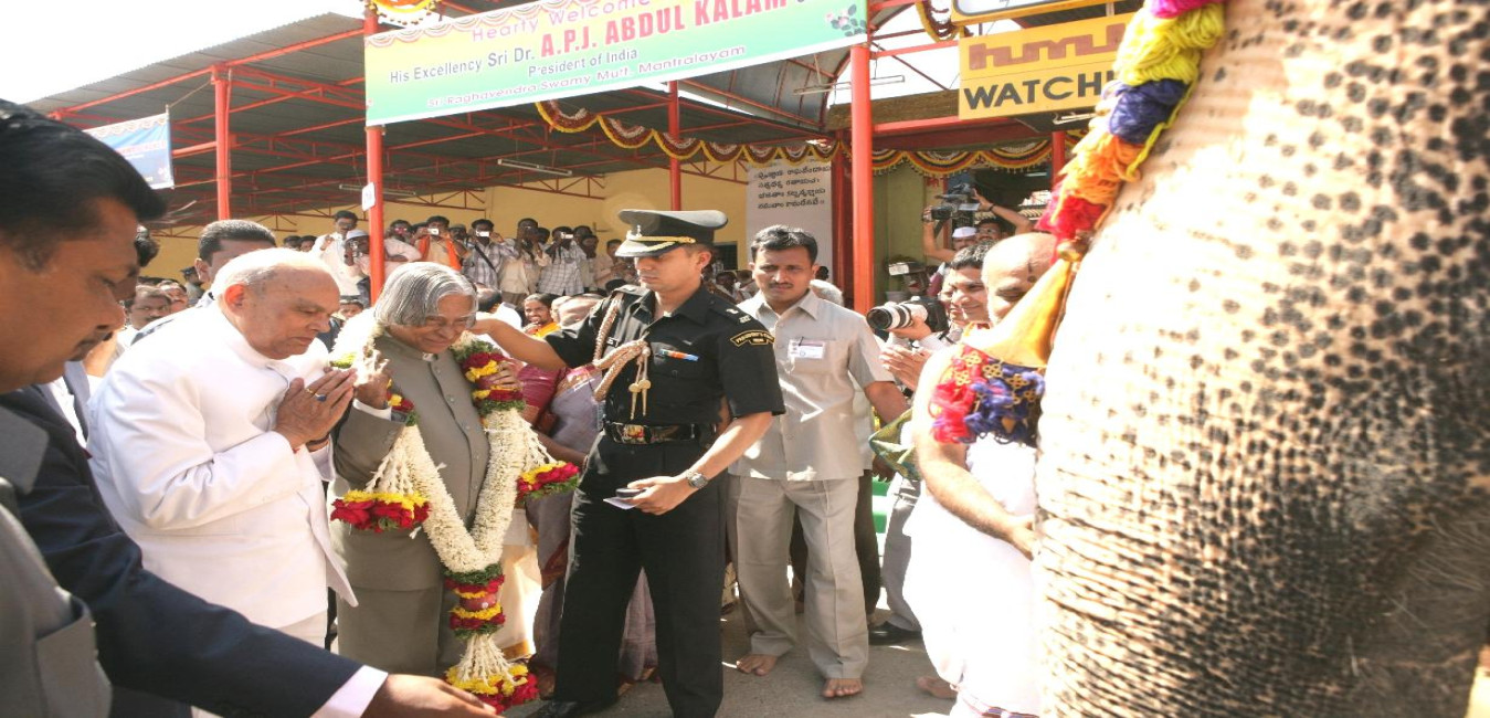 The President of India, Dr A P J Abdul Kalam visiting at Sri Raghavendra Swamy Mutt at Hyderabad in Andhra Pradesh on Feb 01, 2007