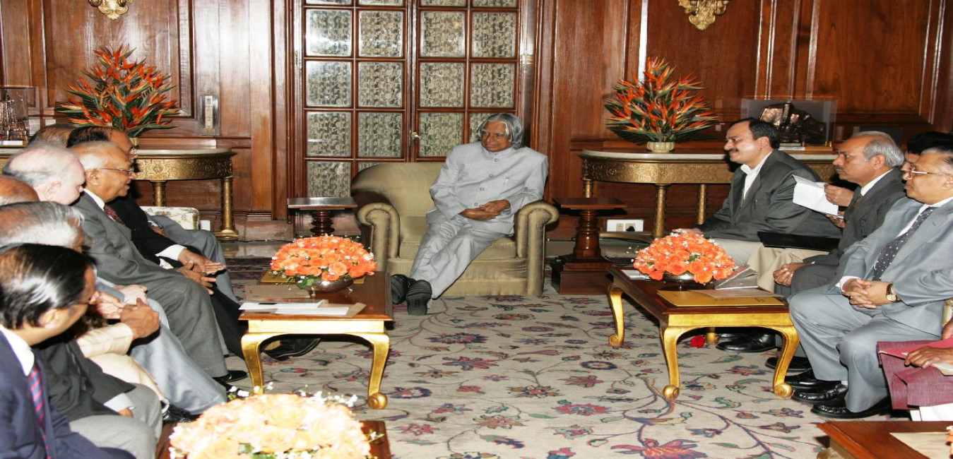 The Postmen calling on the President of India, Dr A P J Abdul Kalam at the Yellow Drawing Room of Rashtrapati Bhavan in New Delhi on Jan 26, 2005