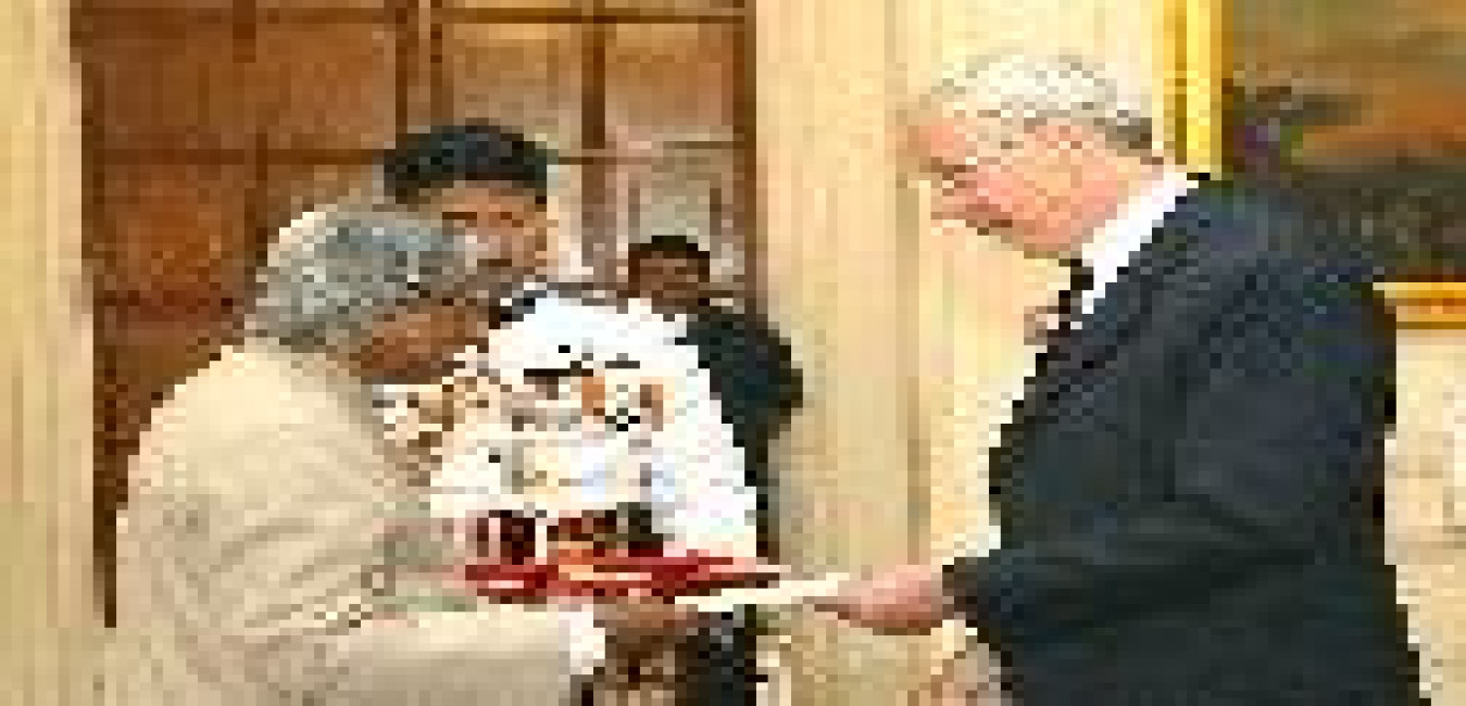 The Ambassador-Designate of Italy to India, HE Mr Antonio Armellini presenting his credentials to the President of India, Dr A P J Abdul Kalam at the Yellow Drawing Room of at Rashtrapati Bhavan in New Delhi on May 07, 2004