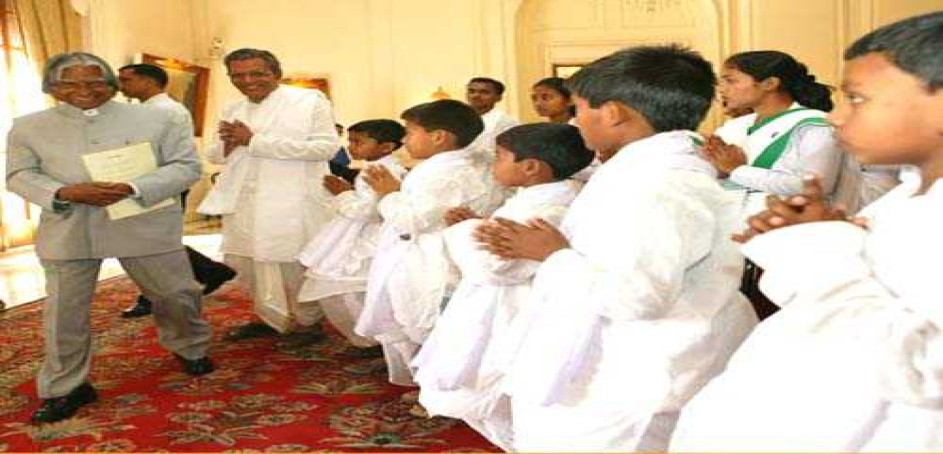 The Students from the School run by the Salwan Education Trust Delhi calling on the President of India, Dr A P J Abdul Kalam at the Yellow Drawing Room of Rashtrapati Bhavan in New Delhi on April 12, 2004