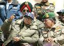 The President of India, Dr A P J Abdul Kalam briefing by Lt Gen A S Bahia AVSM DGMO Army Headquarters and Air Vice Marshal B N Gokhale AVSM VM ACAS Air Headquarters at the Intellectual Room of Rashtrapati Bhavan in New Delhi on March 24, 2004