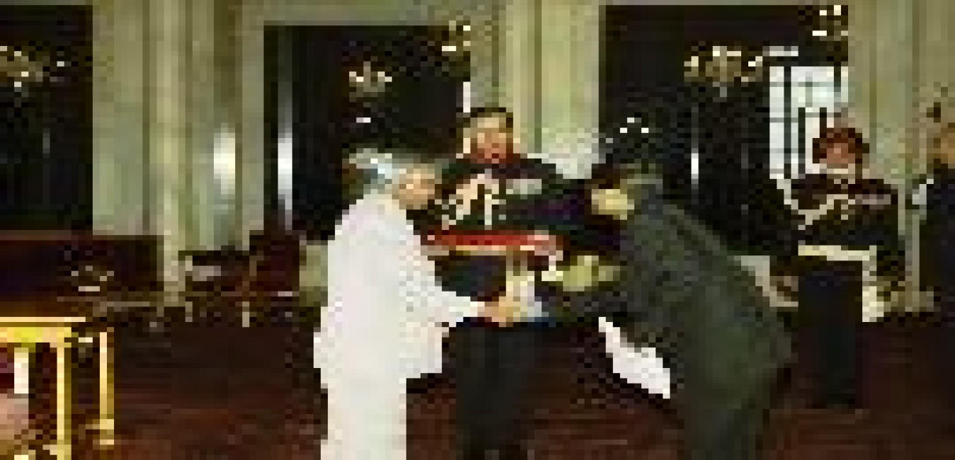 The High Commissioner-Designate of People's Republic of Bangadesh, HE Mr Hemayetuddin presenting his credentials to the President of India, Dr A P J Abdul Kalam at the Ashok Hall of Rashtrapati Bhavan in New Delhi on Dec 30, 2003
