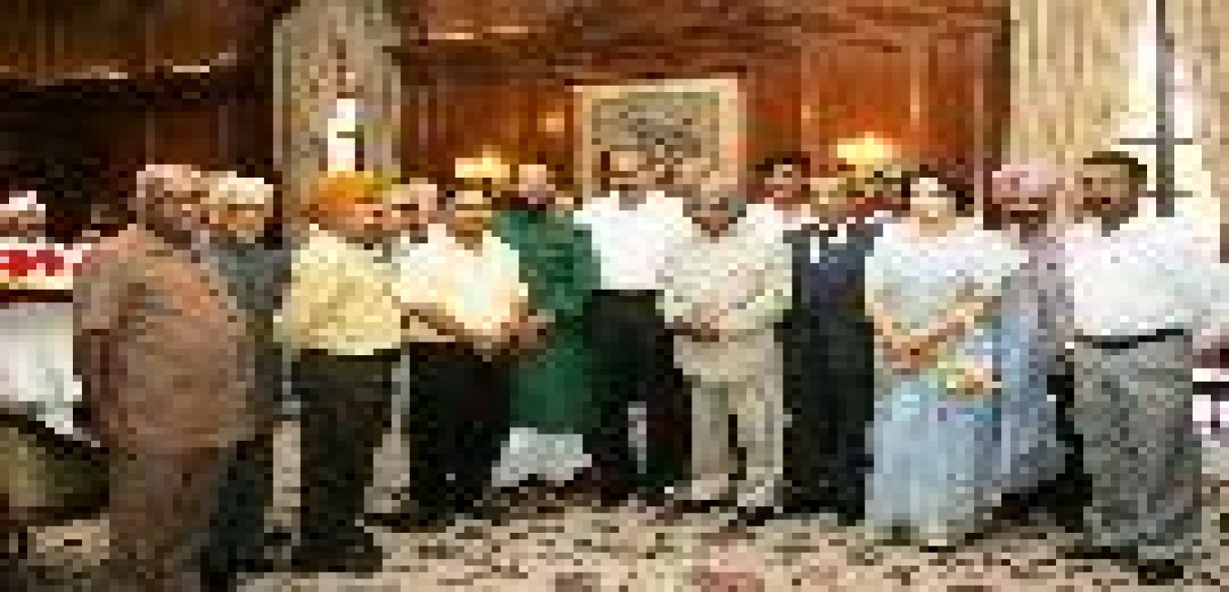 The President of India, Dr A P J Abdul Kalam meeting with the Members of Anjuman Sair e Gul Faroshan to presenting the Pankha of Phool Walon Ki Sai at the Yellow Drawing Room of Rashtrapati Bhavan in New Delhi on Sep 27, 2005