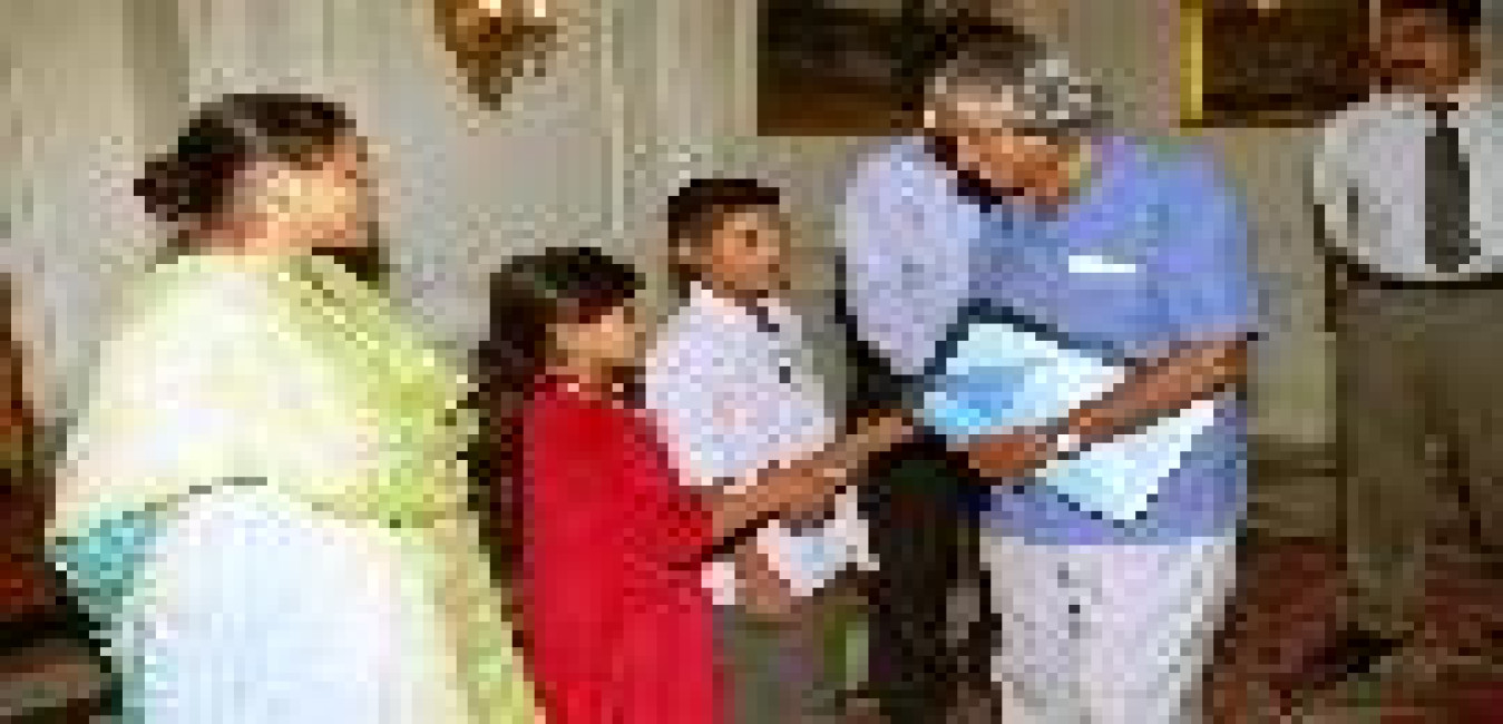 The Children and Officials of Public Advocacy Initiatives for Rights and Values in India calling on the President of India, Dr A P J Abdul Kalam at the Yellow Drawing Room of Rashtrapati Bhavan in New Delhi on July 24, 2003