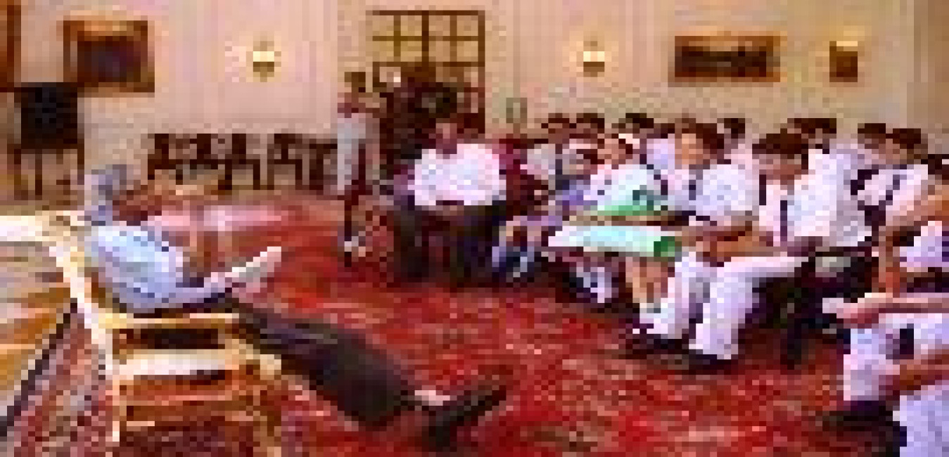 The Students and Teachers from Aeroville Secondary School Tura Meghalaya and Shri P A Sangma calling on the President of India, Dr A P J Abdul Kalam at the Yellow Drawing Room of Rashtrapati Bhavan in New Delhi on July 14, 2003