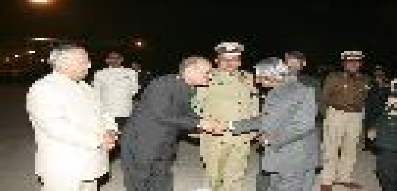 The President of India, Dr A P J Abdul Kalam being received by the Governor of Uttar Pradesh, Shri T V Rajeswar at Lucknow AF Stn in Uttar Pradesh on Jan 14, 2005