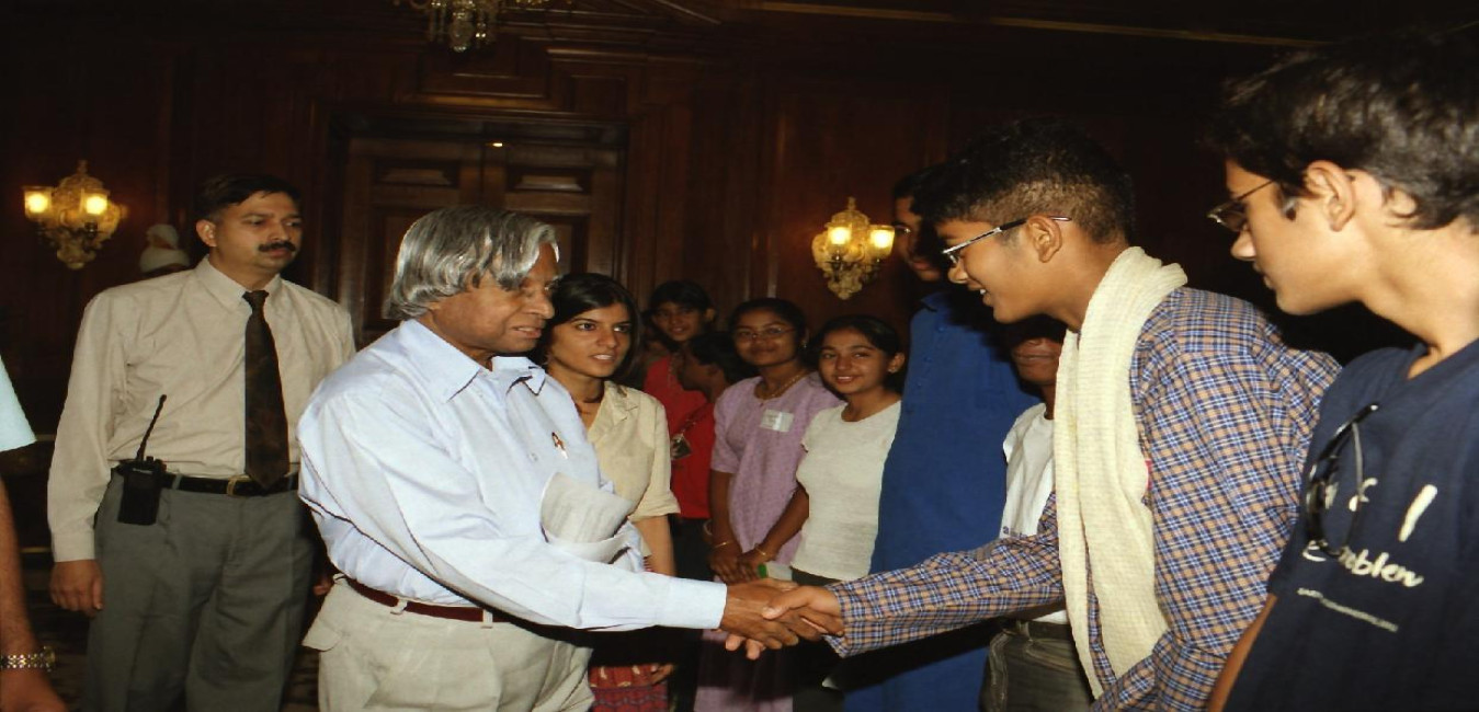 The President of India, Dr A P J Abdul Kalam meeting with the Student from Indian School, Muscat at the Yellow Drawing Room of Rashtrapati Bhavan in New Delhi on Sep 02, 2002