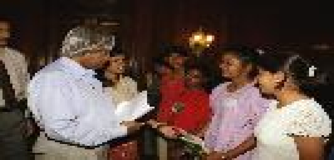 The President of India, Dr A P J Abdul Kalam meeting with the Students from Sacred Heart Collage, Tirupattur at the Yellow Drawing Room of Rashtrapati Bhavan in New Delhi on Aug 30, 2002